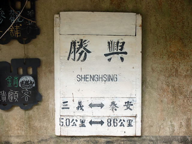距離中正路不遠,很快就讓我發現到轉入勝興車站的指示牌,位于山區的“勝興車站”建于日本統治時代,它是一條山區鐵路路綫,以往是西部最高的一條路綫,高達480米,如今它只剩下一座懷舊的古老的車站和空虛的鐵路,附近的建築也被改建為旅遊區,當中有不少的咖啡館和地道的客家美食館,也有不少售賣紀念品的店鋪。